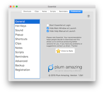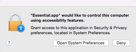 IMPORTANT: The first time Essential starts up it needs your permission to access to certain services. Very important to do for Mac OS 10.13 and 10.14 (Mojave).