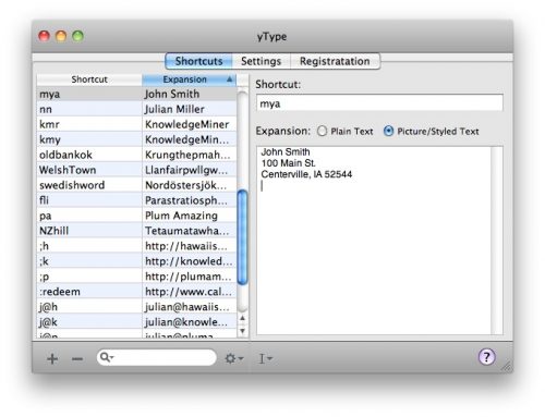 Type a few characters (shortcut) to paste a much larger block of text (expansion) like your name, a url, picture or even several pages of formatted text instantly anywhere on your Mac in any application.
