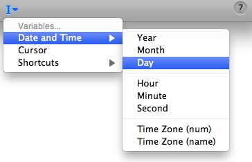 - use variables to insert the month, day, year, time, cursor, timezone.