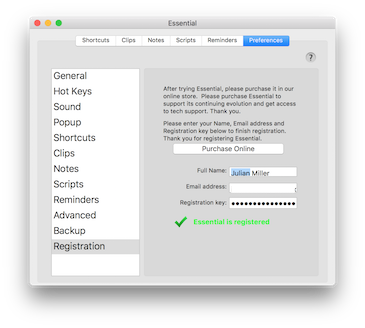 A: After 30 days we remind you to purchase the software. You don’t have to but we hope you find it useful enough that you want to. Your payment is small but it helps us pay for programming, website, sales, tech support, design and the continuing evolution of the app. We have lots of ideas to make Essential even more essential in the future and the price will go up over time.
