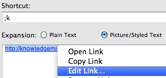 - Shortcut Variable – a Shortcut can be made into a variable when surrounded by a few extra characters. They can be inserted into other expansions when selected from the Shortcut Variable drop down menu.