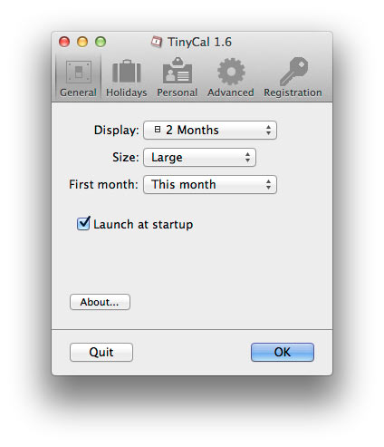 TinyCal can be customized to show 1, 2, 3 or 12 months at one time. The display can be arranged as tall or wide.