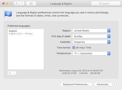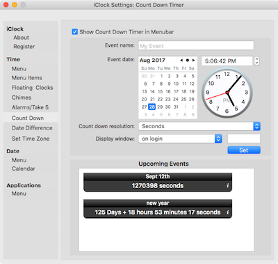 Set time format – select the time format from this dropdown menu of commonly used formats that you want to see in the menu bar. The red X icon allows you to delete formats from that menu.
