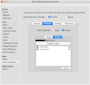 After selecting the calendar you want to appear when you click the date in the menu bar select either the Apple or Google calendar.
