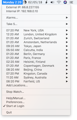 Location Name(s)/Time(s) in menu – when checked, this will display your locations/cities with their current local time.