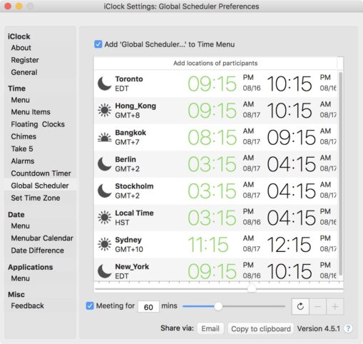 Have you ever had to arrange a conference call with people in many different timezones? It can be very challenging figuring out how to connect with 3+ people in different locations and not catch them at lunch, dinner, asleep or just getting up. Global Scheduler is the tool to arrange this in the quickest and easiest fashion.