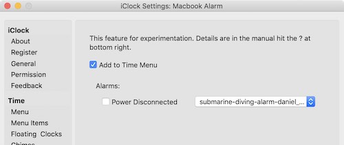 Time:Menu refers to all the settings for the time you see in the menu bar. We don’t allow turning this on/off because we need to have a way to get to the preferences.