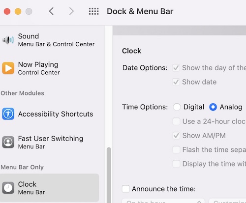 IMPORTANT: For Mac OS 12 and earlier, first switch Apple’s time to ‘Analog’ icon do this: