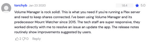 Volume Manager can keep an eye on a mount and if a server goes down (and the mount disappears) Volume Manager will remount the share when the server comes back online. However, for this to happen, you need to check the “Monitor this mount and keep it mounted” switch.